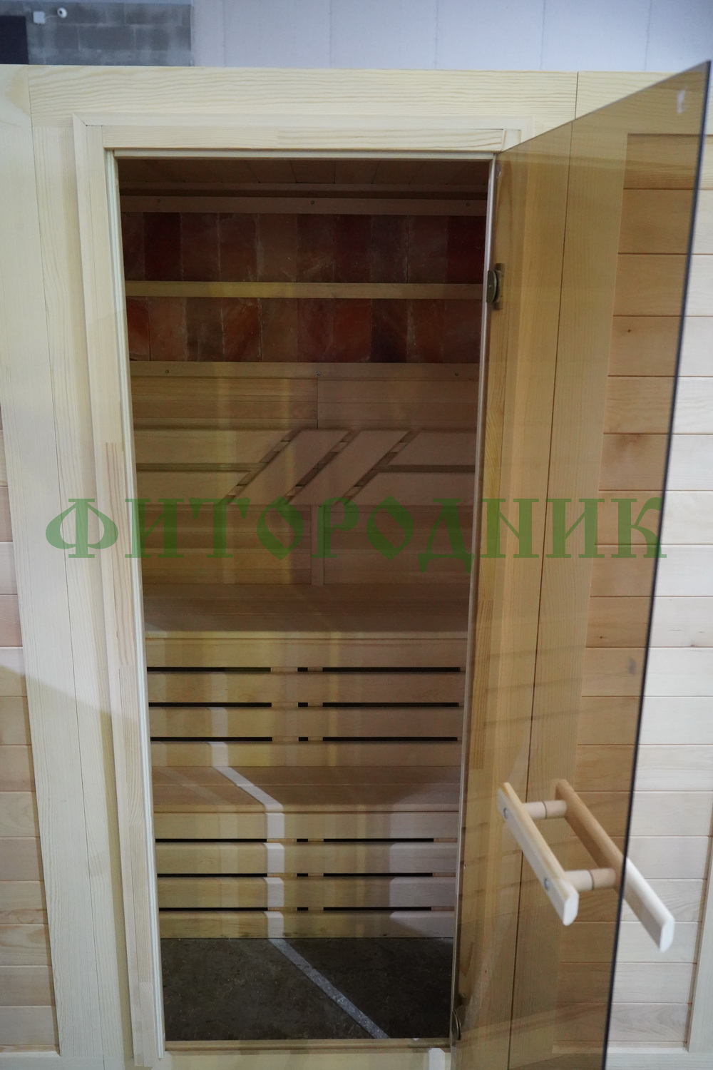 - Фасад сауны можно изготовить деревянным или стеклянным