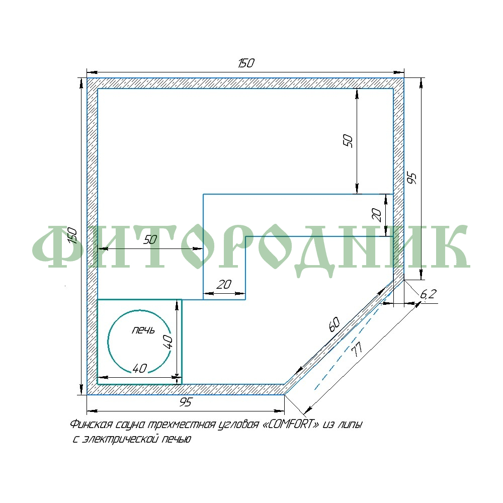 Финская сауна трехместная угловая «COMFORT» с электрической печью