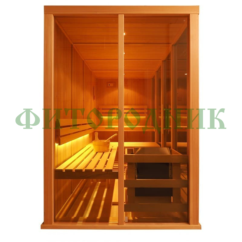 Финская сауна пятиместная «GLASSY» с электрической печью HARVIA