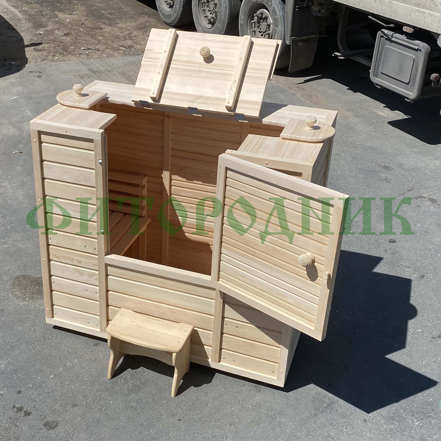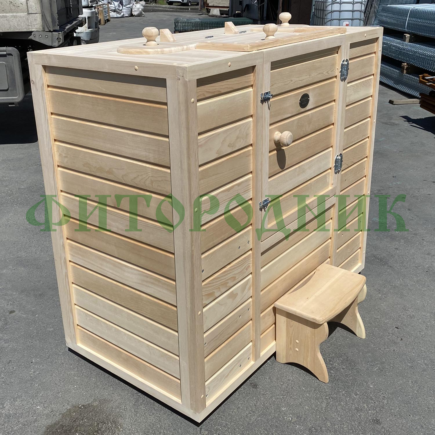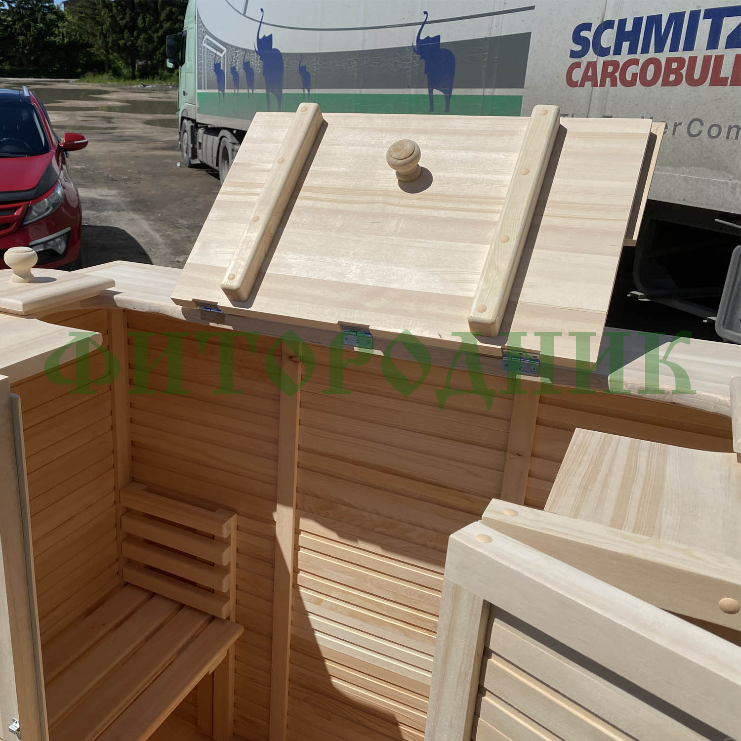 - Мини-сауна из кедра, двухместная, толщина стенок 40 мм;