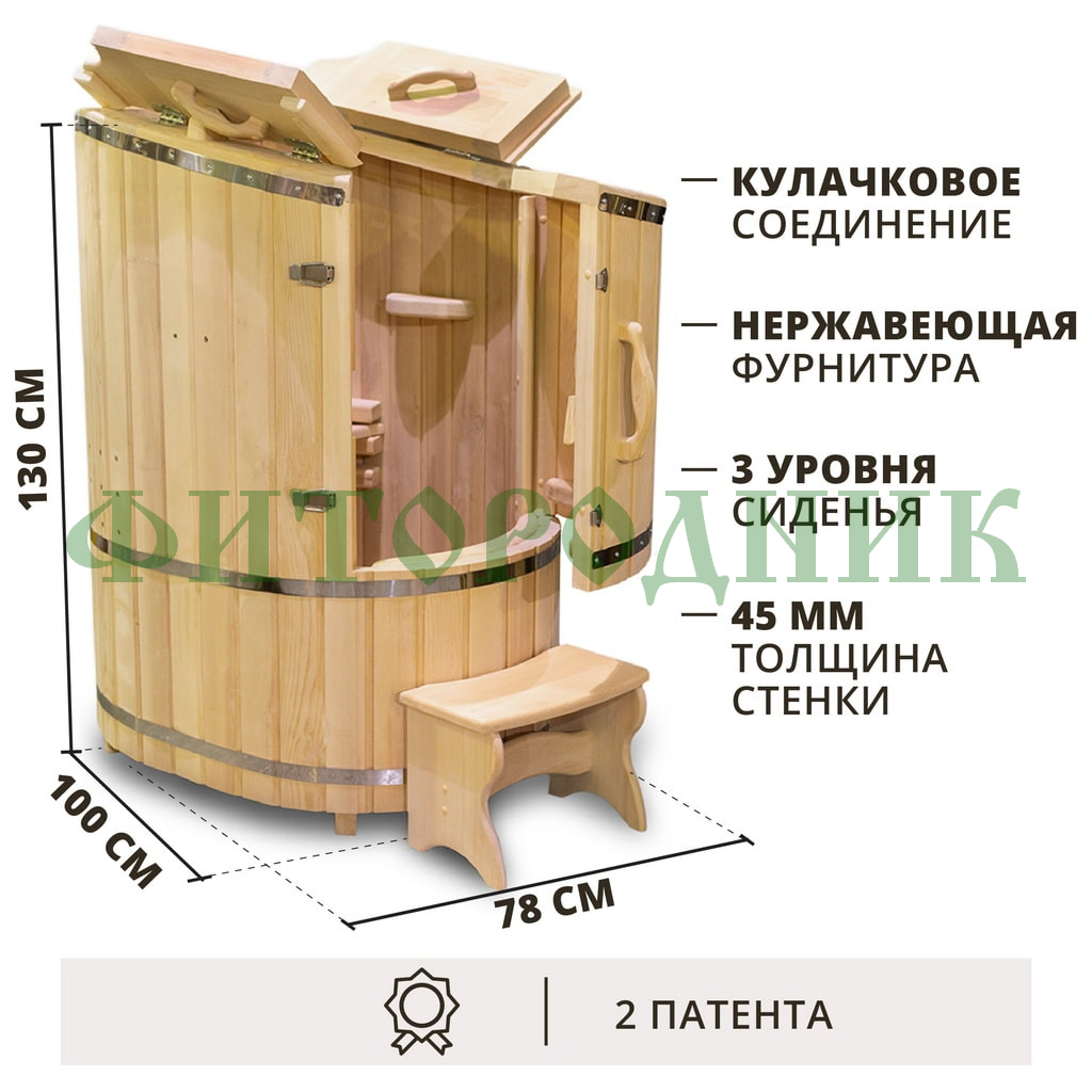 Использование цельного сибирского кедра придает бочке не только прочность и долговечность, но и наполняет парное пространство целебными фитонцидами. Мягкий пар способствует расслаблению, улучшает состояние кожи и способствует общему укреплению организма.