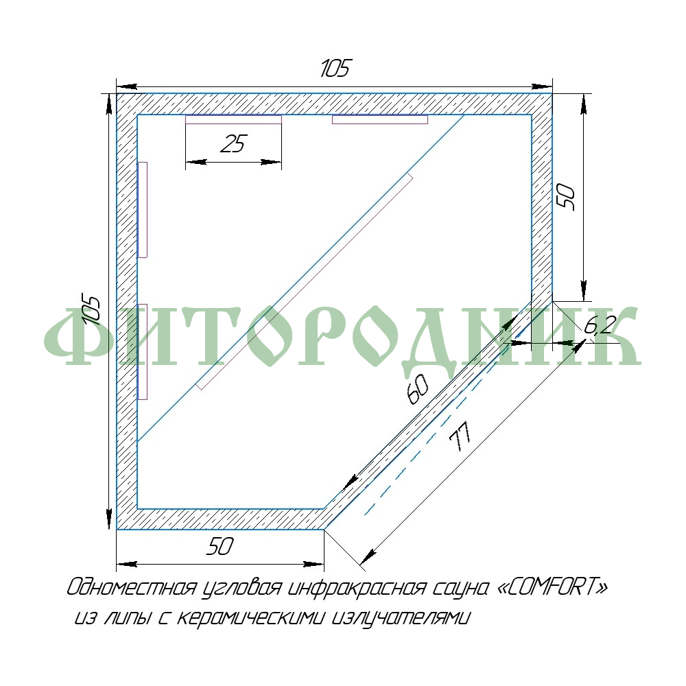 Одноместная угловая инфракрасная сауна «COMFORT» с керамическими излучателями