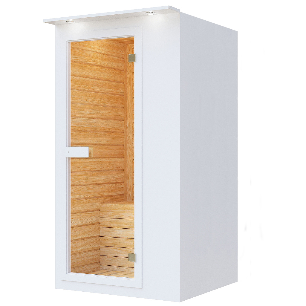 В модели используются семь карбоновых инфракрасных излучателей Q-TERM (Южная Корея), которые равномерно прогревают всё пространство и обеспечивают мягкое, безопасное воздействие. Двойные утеплённые стенки способствуют быстрому нагреву и удержанию температуры, а цельностеклянная дверь из закалённого стекла наполняет кабину светом и делает интерьер визуально просторнее.
