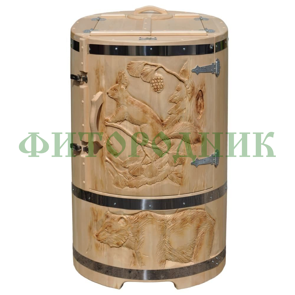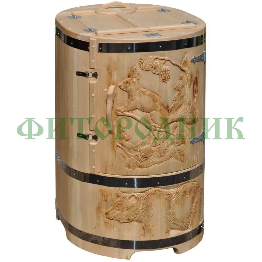- Уникальный дизайн: художественное оформление «Медведь и белка» придаёт бочке неповторимый вид;
