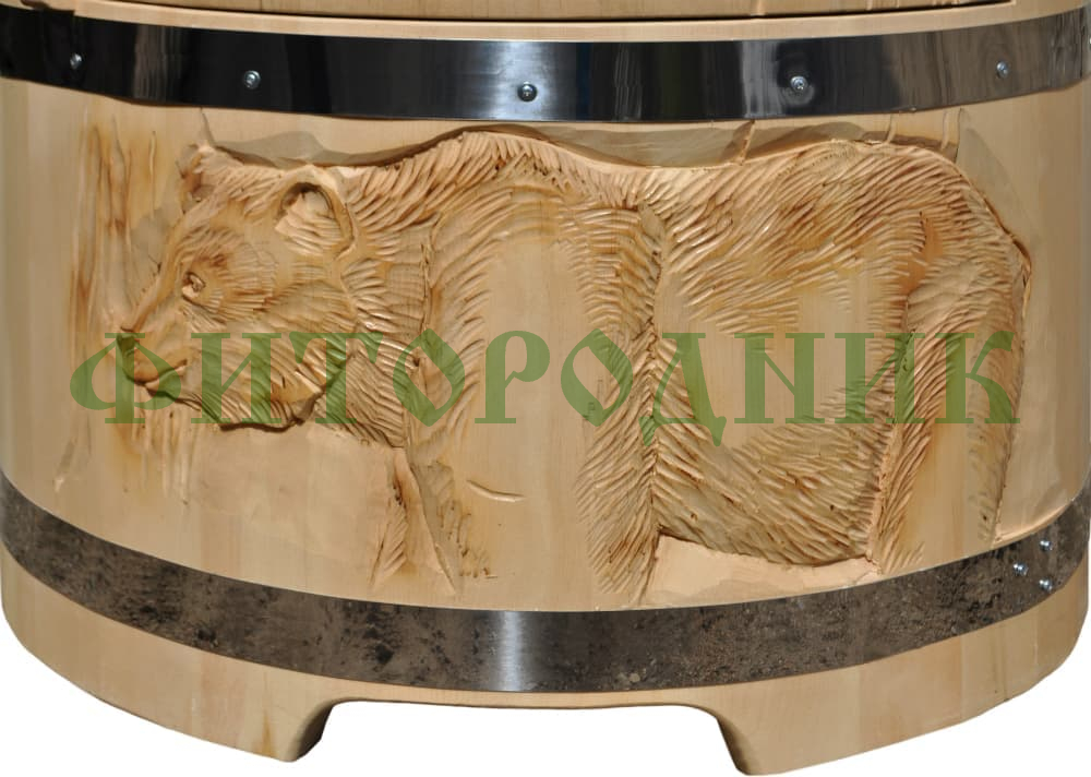 Кедровая бочка овальная «Профессиональная» со скосом с художественным оформлением «Медведь и белка»