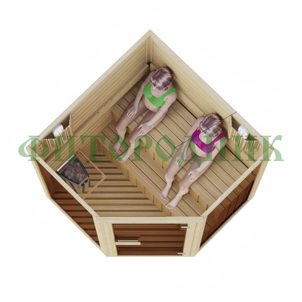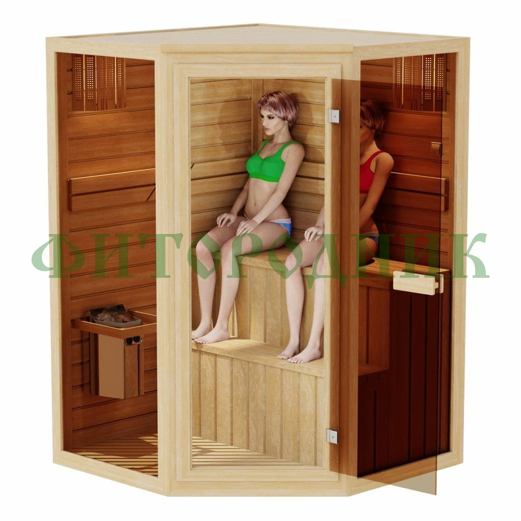 Комбинированная сауна двухместная угловая «COMFORT» с электрической печью и парогенератором