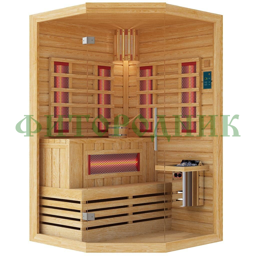 Комбинированная сауна двухместная угловая «PREMIUM» с электрической печью Harvia