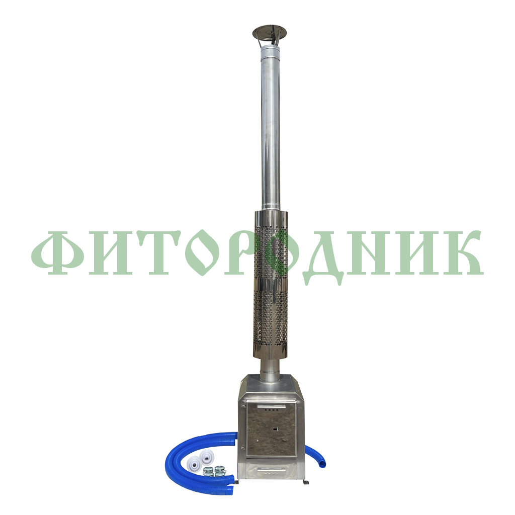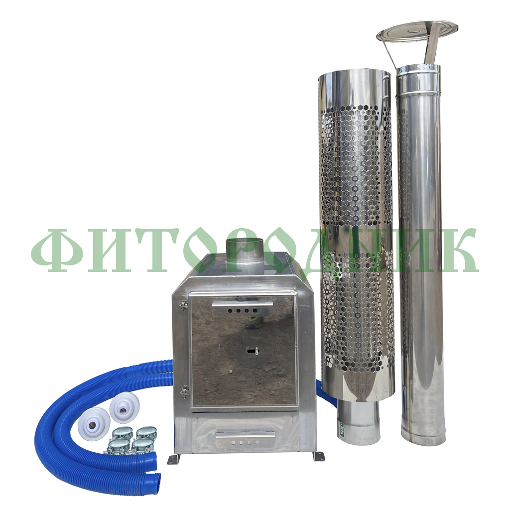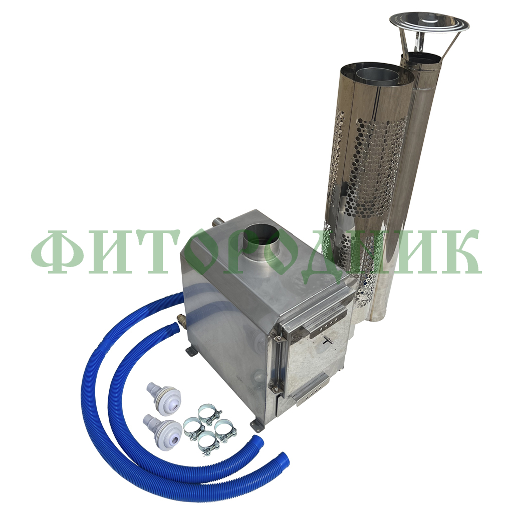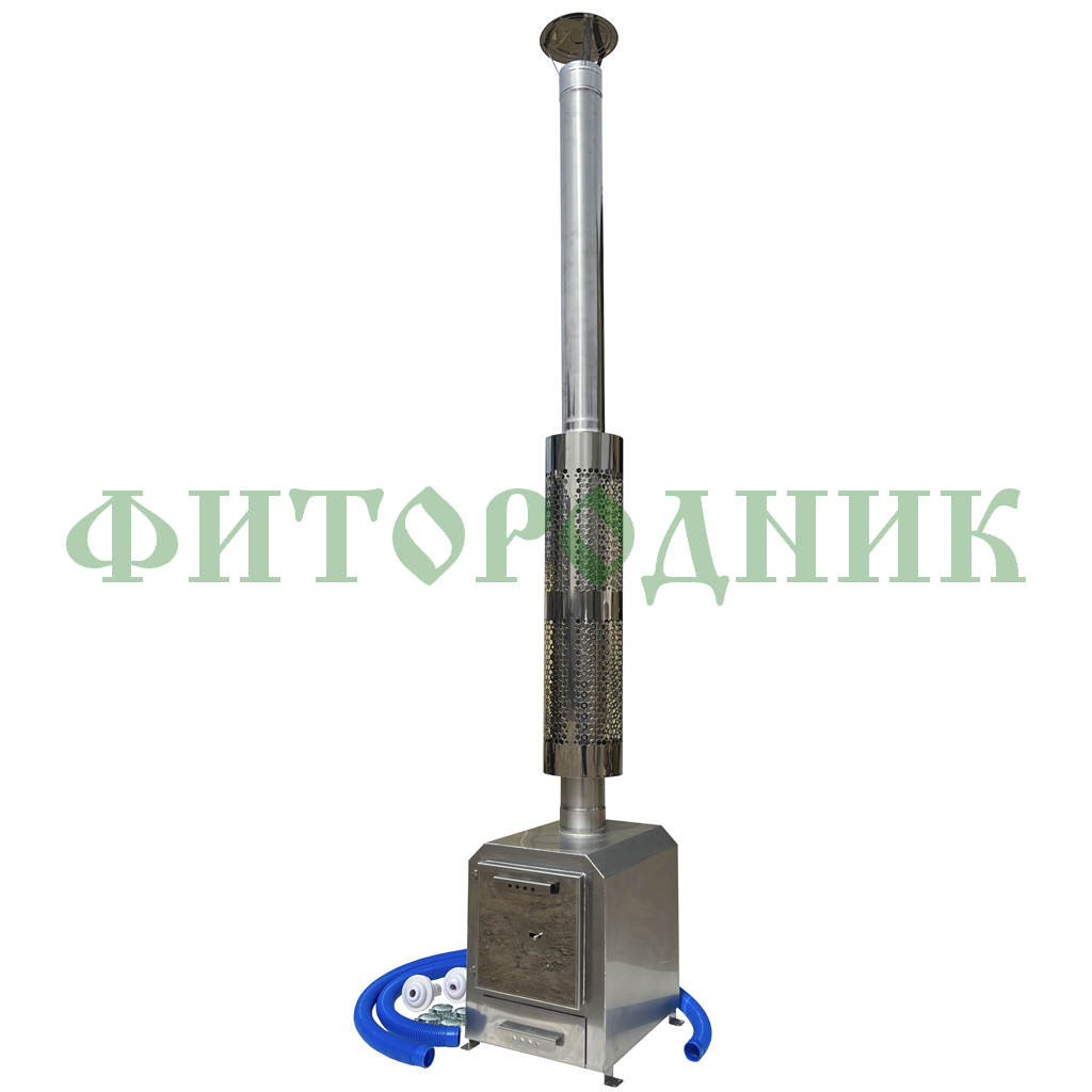 Модель работает на дровах и не требует подключения к электросети — нагрев осуществляется за счёт естественной циркуляции. Корпус выполнен из нержавеющей стали AISI, устойчивой к коррозии и температурным нагрузкам. Печь предназначена для круглогодичного использования на улице и полностью адаптирована к суровым условиям эксплуатации.