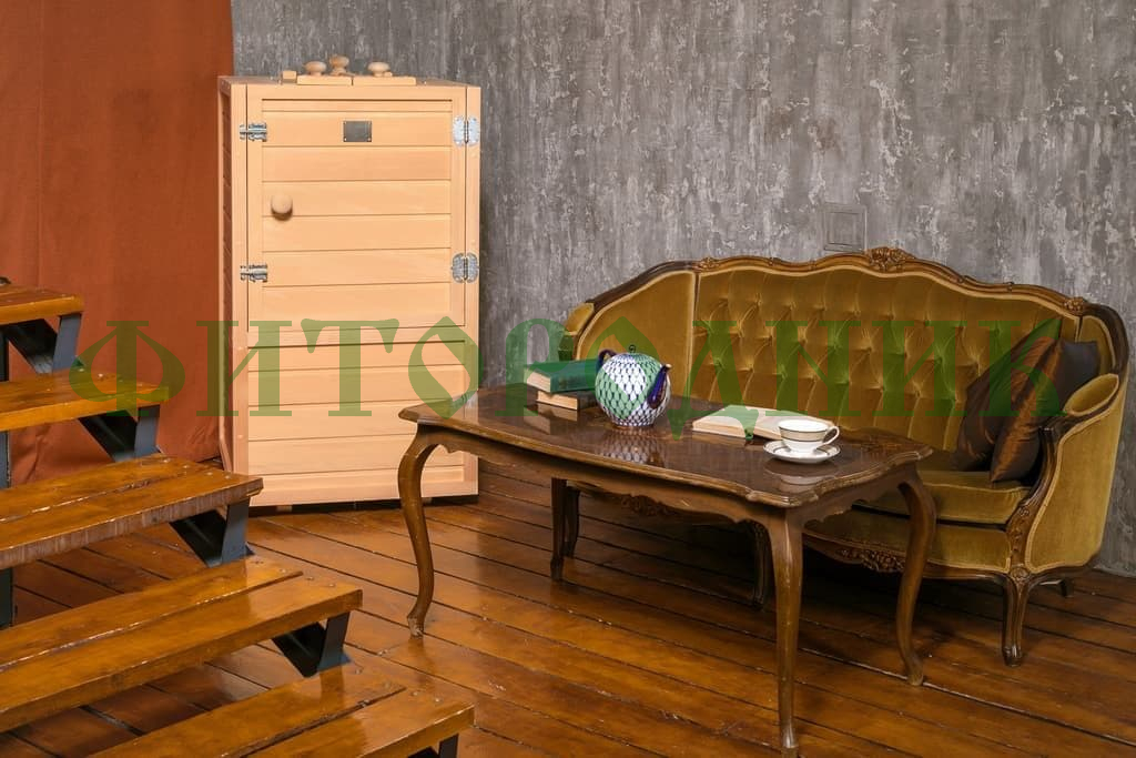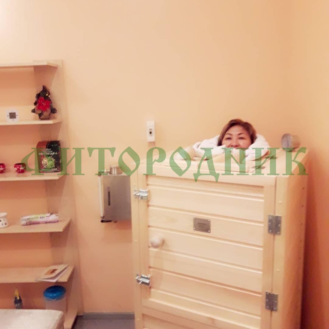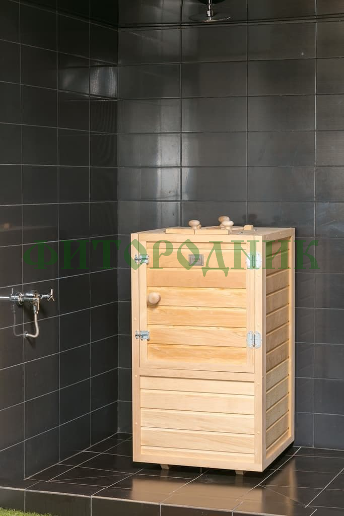 Мини-сауна подходит для пользователей любого роста и телосложения. Трёхпозиционное сиденье позволяет подобрать наиболее удобное положение, а встроенные подлокотники обеспечивают дополнительный комфорт. Пространство внутри организовано рационально за счёт квадратной формы — даже при компактных внешних габаритах остаётся ощущение простора.