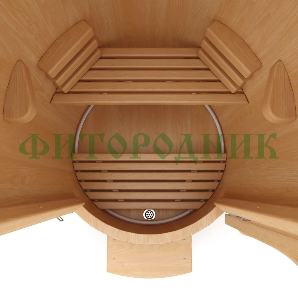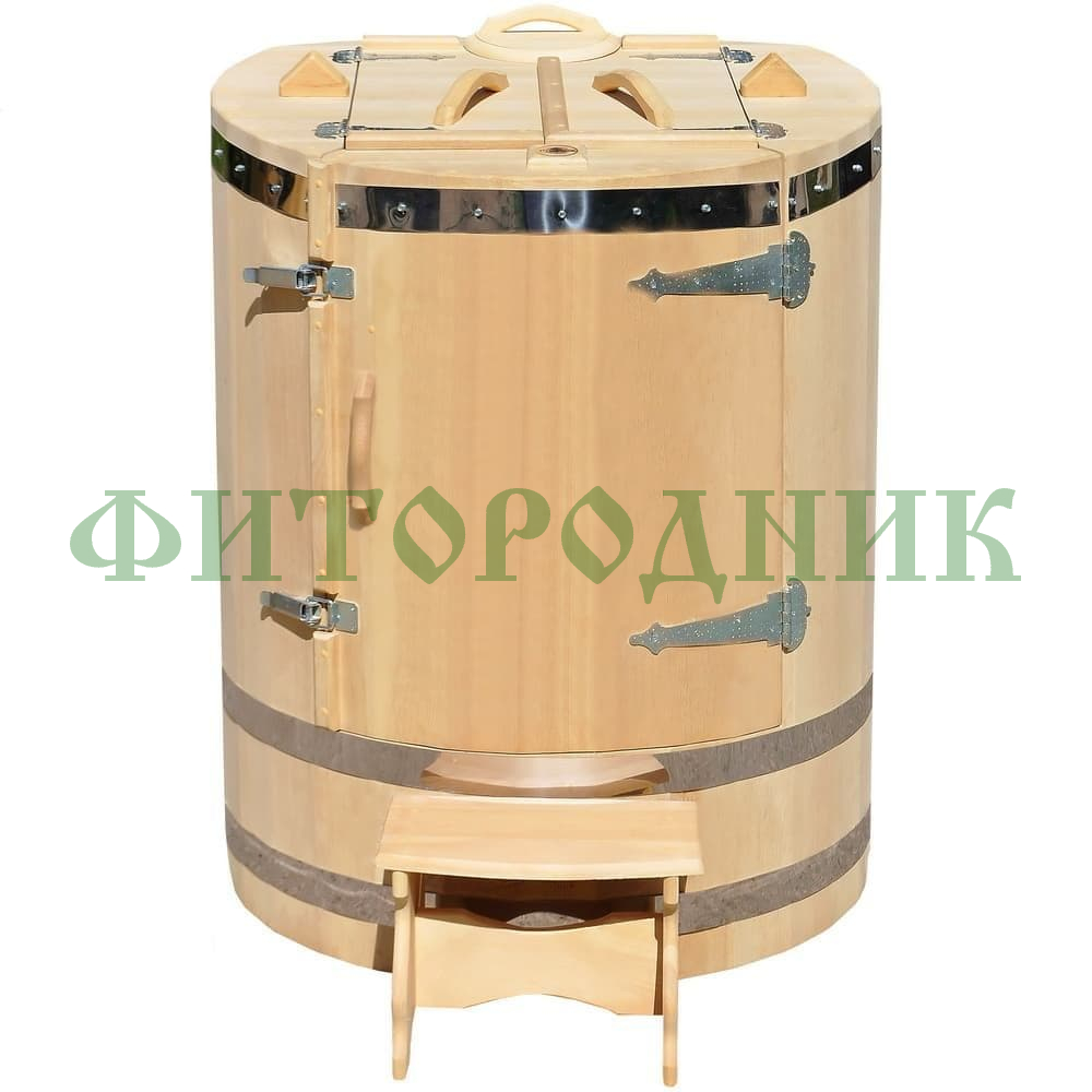 Бочка выполнена из отборного сибирского кедра с утолщёнными стенками 45 мм, которые эффективно удерживают тепло и насыщают пар фитонцидами, способствующими очищению организма, укреплению иммунитета и снятию стресса.
