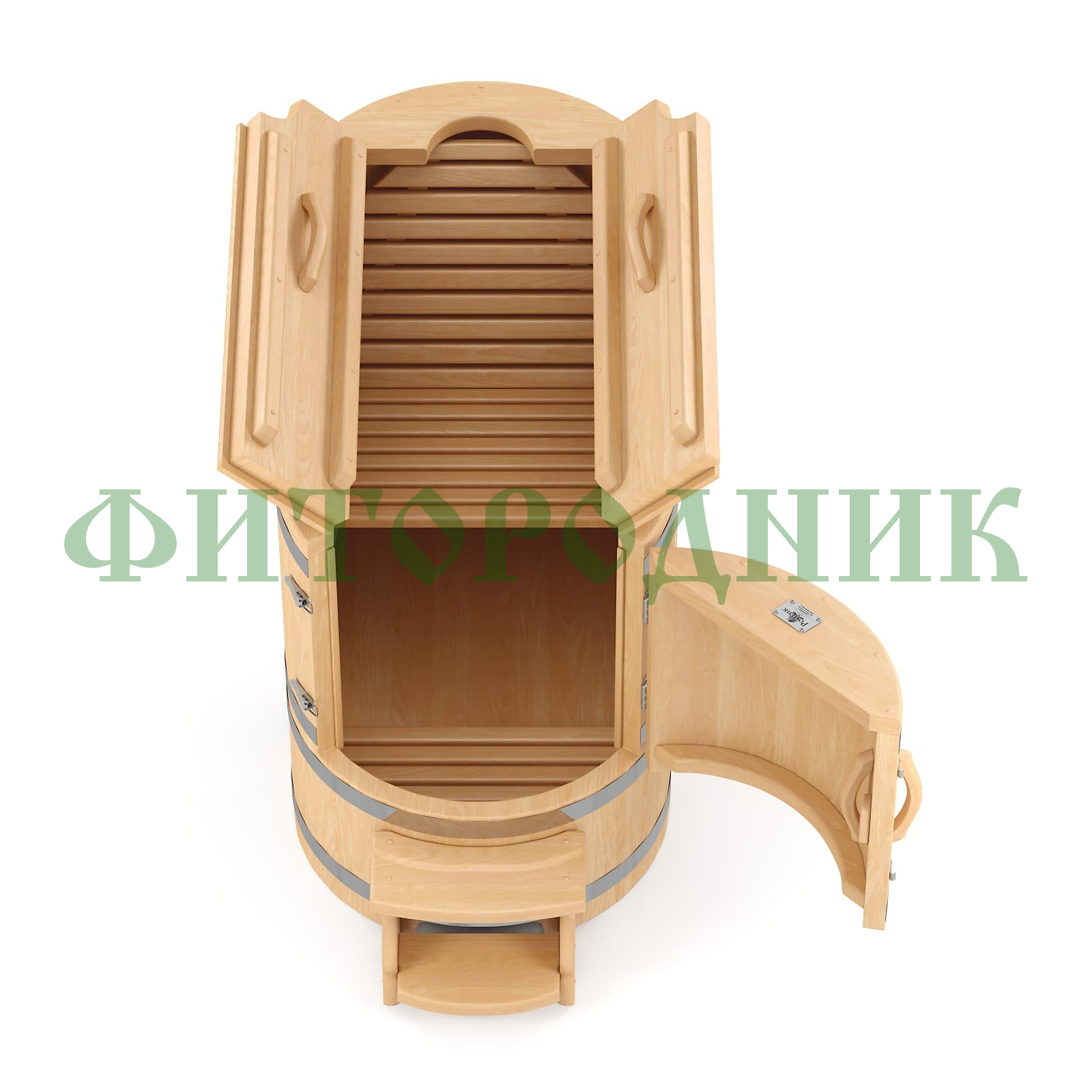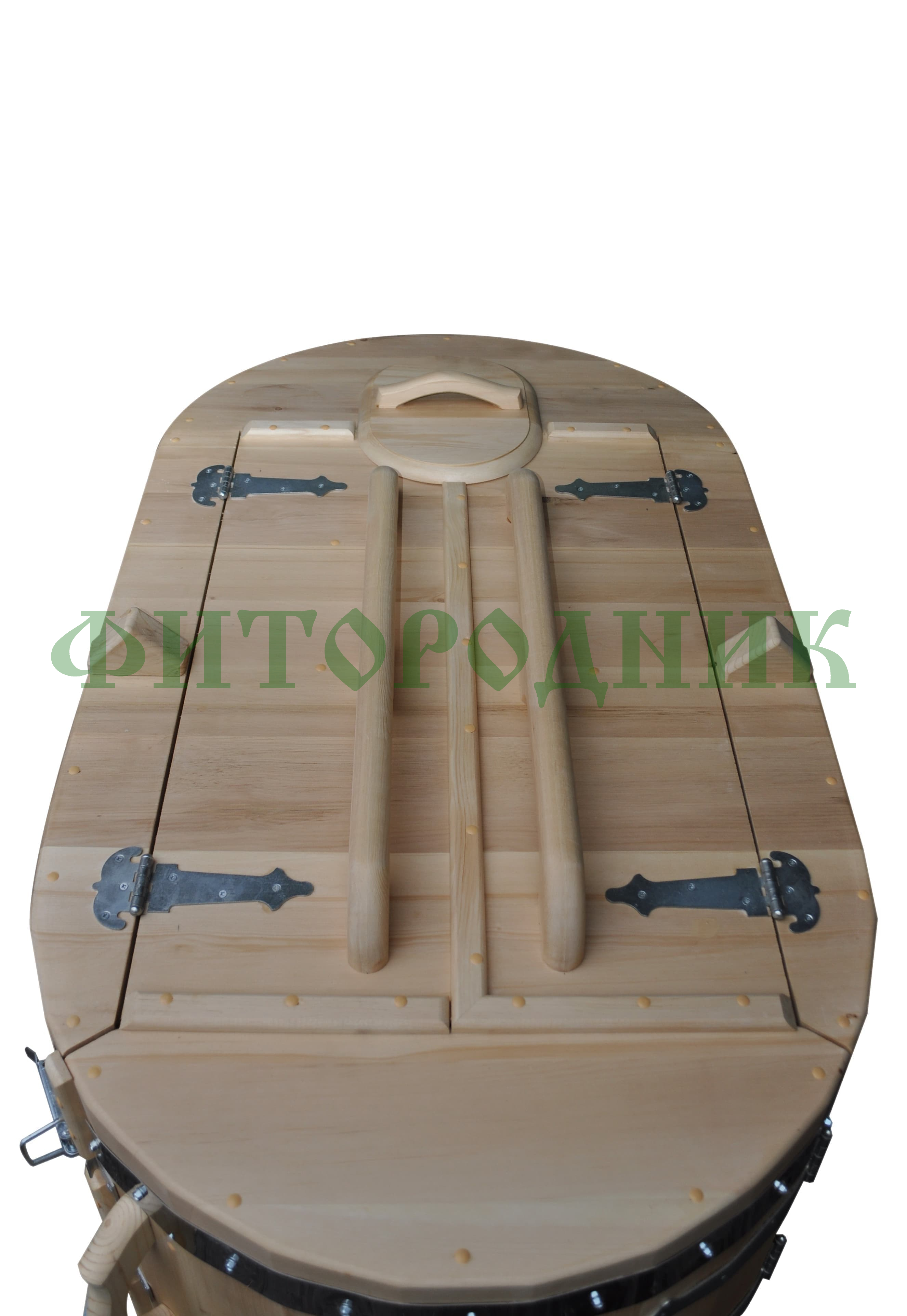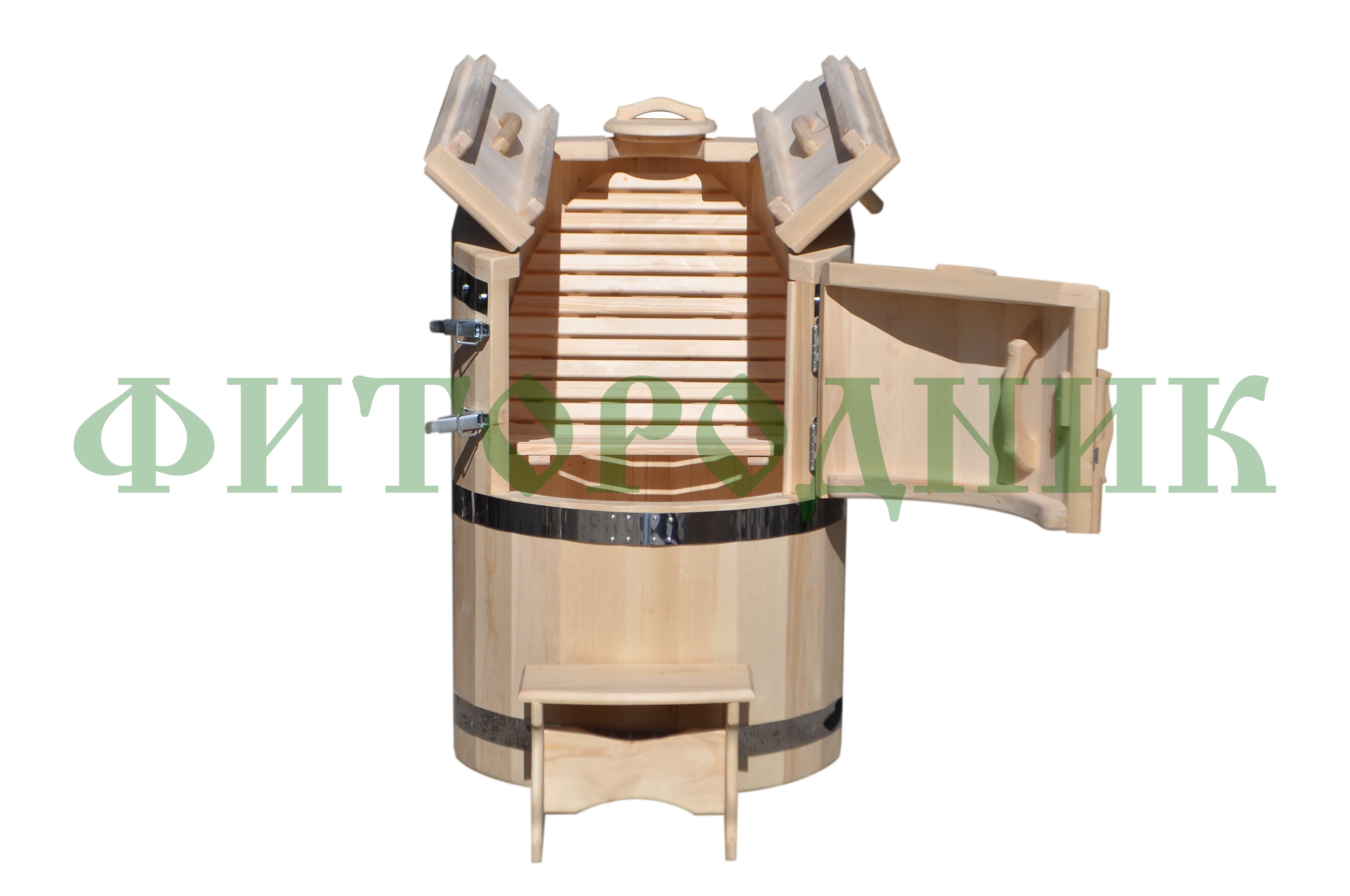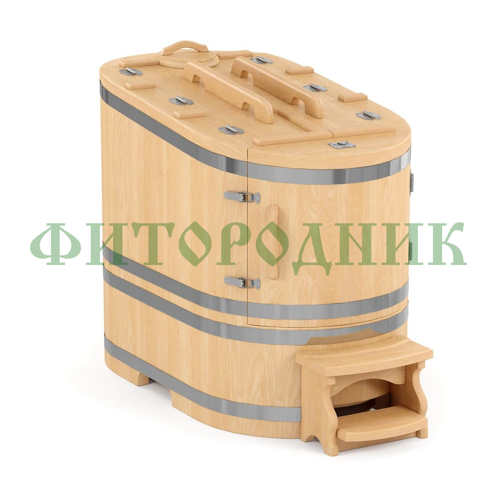 Бочка изготовлена из отборного сибирского кедра, известного своими антисептическими и оздоравливающими свойствами. Толщина стенок — 25 мм, а дно и крышка усилены до 45 мм, что обеспечивает отличную теплоизоляцию, долговечность и надёжность конструкции.