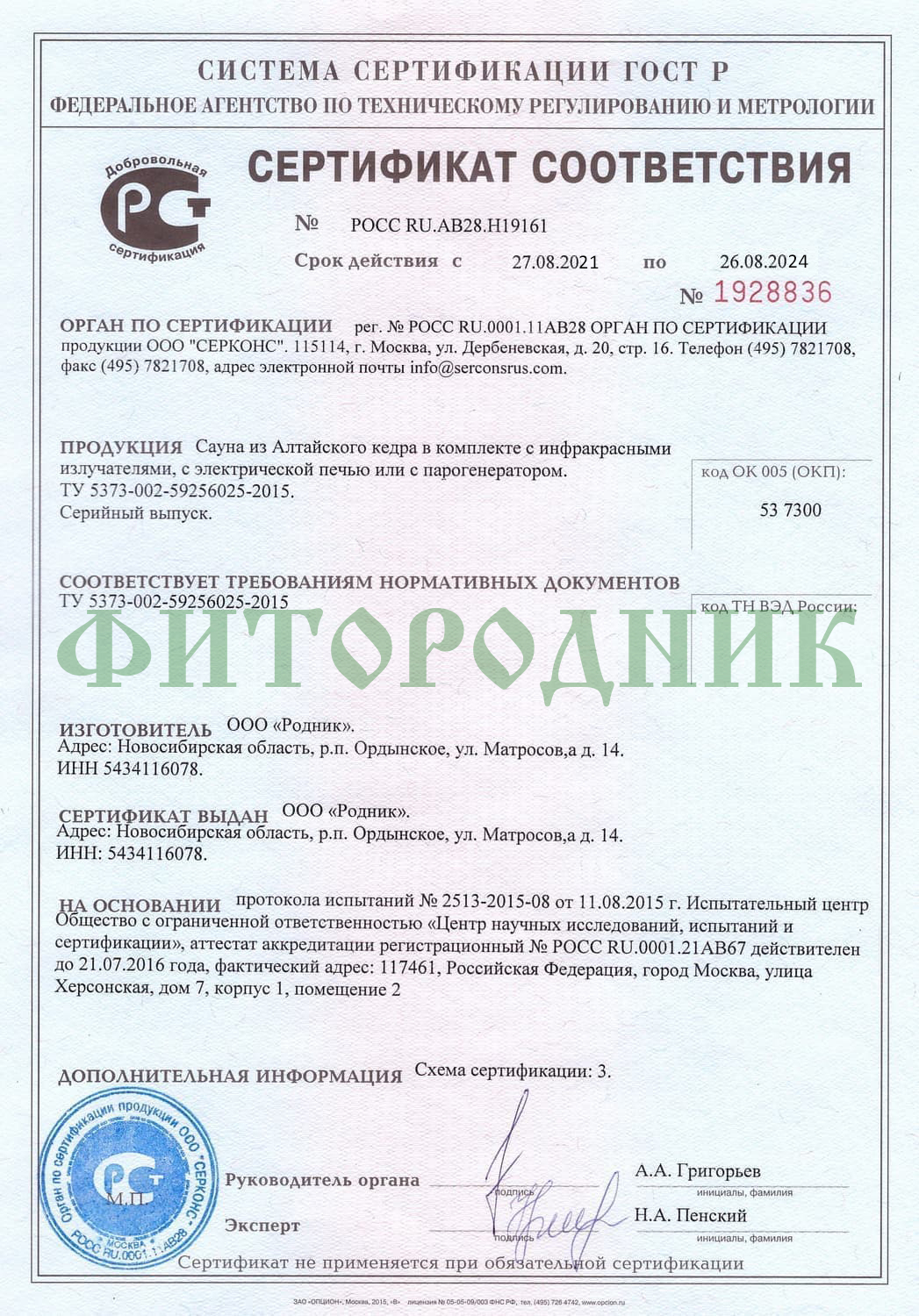 Логотип компании «Фитородник» защищен товарным знаком Российской Федерации.